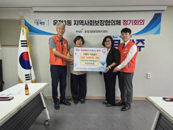 엠지(MG) 파주새마을금고는 매년 복지 분야에서 꾸준한 사회 공헌활동을 이어오고 있으며, 이번 기탁된 성금 200만 원 또한 독거노인, 한부모가정, 경로당 등 복지 사각지대에 놓인 저소득층 지원을 위한 뜻깊은 실천으로 마련됐다.