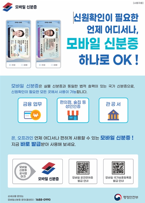 한편, 실물 신분증을 지니지 않고 다니는 경우도 많아지고 있는 만큼, 행정안전부가 제공하는 ‘모바일 신분증’ 앱을 이용하면 실물 신분증 없이도 성인임을 인증하고 주류를 제공받을 수 있다. 모바일 신분증은 가까운 주민센터에 방문 신청하면 편리하게 휴대폰에 설치할 수 있다.