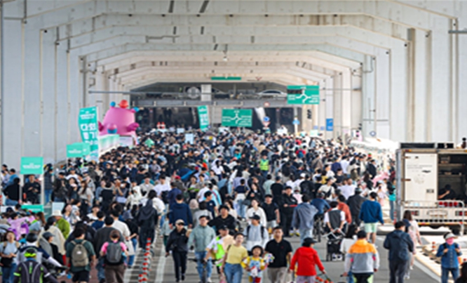지난해 총 15차례 열린 ‘2024 뚜벅뚜벅 축제’에는 회당 약 10만 명, 총 150만 명이 찾았던 데 이어 올해는 전년 대비 50% 늘어난 일평균 약 15만 명이 방문한 것으로 나타났다. 서울시는 올해 5월부터 잠수교 북단에서 운영된 푸드트럭, 힐링존이 잠수교 남·북단 전반의 활성화를 이끌면서 방문객이 늘어난 것으로 봤다.