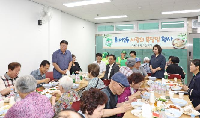 복달임 행사는 팔달구 이상균 구청장이 참석해 경로당 어르신과 화서2동 단체의 안부를 살피며 건강한 여름나기를 응원했으며, 화서2동 단체협의회에서 삼계탕과 수박 등 건강한 여름나기 복달임 지원에 감사의 인사를 전달했다.