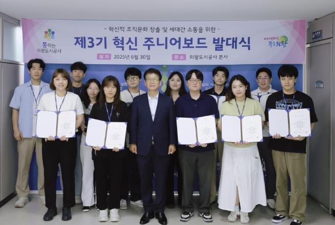 의왕도시공사는 공사 내부의 다양한 세대 간 소통을 촉진하고, 청년 직원들의 창의적인 아이디어를 경영에 반영하고자 2023년부터‘주니어보드’를 운영하고 있다. 특히 이번에 출범한 혁신 주니어보드 3기는 청년 직원들의 자발적 참여 확대와 함께, 실질적인 혁신과제 발굴 및 제안 기능을 한 층 강화한 것이 특징이다.