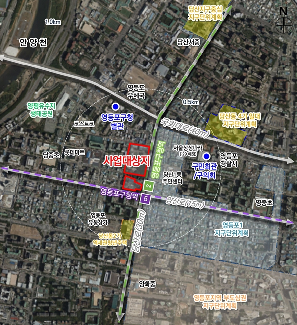 현 영등포구청사는 1976년 준공 이후 49년이 경과된 노후 건축물로, 그간 누적된 안전성 문제와 협소한 공간으로 인해 행정서비스 제공에 어려움이 많았다. 이에 순환개발 방식으로 기존 청사 부지를 당산근린공원과 맞교환하여 지상 19층 규모의 구청·구의회 공공청사를 신축할 계획이다.