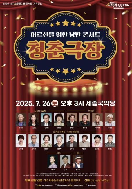 여주세종문화관광재단 이순열 이사장은 “올해 여주시가 WHO로부터 어르신 친화도시를 재인증받게 된 만큼 우리 재단도 어르신들에게 활력을 불어넣어 줄 수 있는 다양한 프로그램을 제공하고자 한다.”라며, “덥고 습한 날씨에 몸이 지칠 수 있지만, 이번 공연이 어르신들의 마음만큼은 즐겁고 건강하게 만들어드릴 예정이니 많은 기대 바란다.”라고 전했다.