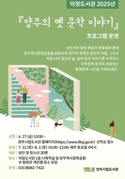 도서관 관계자는 "‘양주의 옛 문학 이야기’ 참여를 통해 양주 시민으로서 자긍심을 가지며 내가 살고 있는 고장의 지역 문화에 대해 생각해 볼 수 있는 시간이 되길 바란다." 라고 전했다.