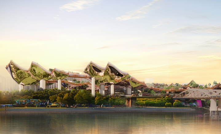 기존 건축물을 최대한 존치하면서 새로운 아이콘 조성을 목표로 7개의 떠 있는 꽃잎이 하나의 공중정원이 되어 새롭고 환상적인 풍경을 연출한다.