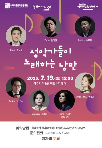 7월 ‘아트·뮤직 려(Art·Music Ryeo)’ 프로그램에서는 성악가들이 노래하는 ‘낭만’이라는 제목으로 프로그램을 구성했으며 테너 최용석, 김태형 / 바리톤 김재황, 나의석 / 소프라노 정성미 / 피아노 김지현 / 콘서트가이드 이세영이 참여한다.
