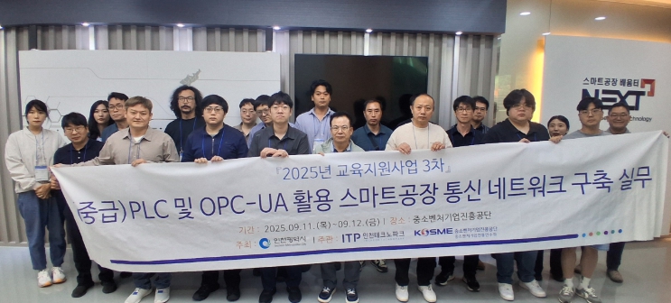 이번 교육은 PLC(Programmable Logic Controller)와 OPC-UA(Open Platform Communications Unified Architecture)를 활용한 스마트공장 통신 네트워크 구축을 주제로, 인천 제조기업의 스마트공장 실무능력 강화를 돕기 위해 기획됐다.