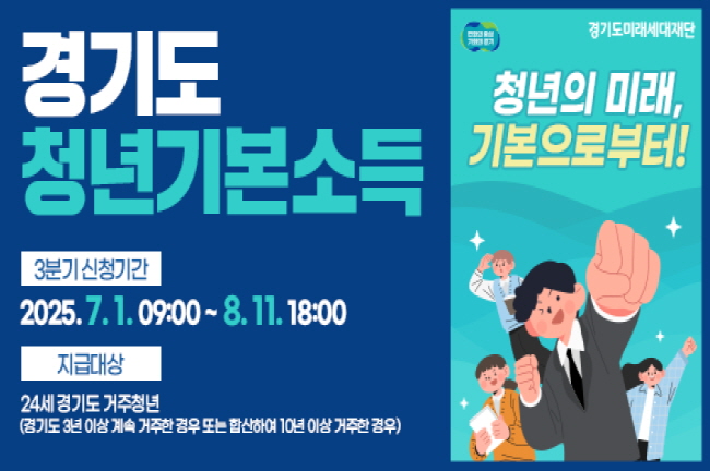올해 신청 대상은 2000년 7월 2일생부터 2001년 7월 1일생까지 출생한 만 24세 청년으로 신청일 기준 경기도에 주민등록이 되어 있어야 하며 경기도에 3년 이상 연속 거주 또는 합산 10년 이상 거주한 이력이 있어야 한다. 기초생활수급자는 수급자 증명서를 제출할 경우, 연간 지급액을 일시금으로(최대 100만 원) 받을 수 있다.