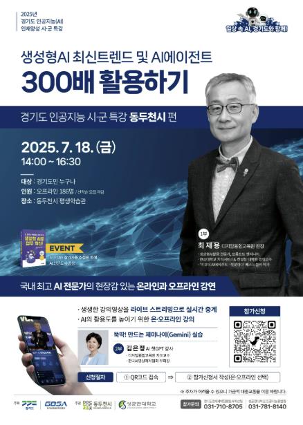 이번 강연은 ‘생성형 AI 최신 경향 및 AI 에이전트 300배 활용하기’를 주제로 진행된다. 최재용 디지털융합교육원장이 강사로 나서 인공지능 기술의 흐름과 실생활 적용 방안에 대해 심도 있게 설명할 예정이다. 이번 강연은 시민들의 인공지능 이해도 제고와 디지털 지식의 선순환 구조 마련을 위한 의미 있는 자리로 기획됐다.