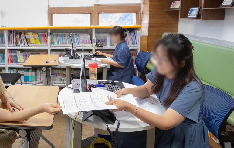 신청서를 나눠주고 신분증 확인을 안내하며, 연신 반복되는 민원에 응대하는 기간제 인력들의 손끝엔 어느새 익숙함이 묻어난다. 그러나 손에 익은 업무와 달리 여전히 ‘감정노동’에는 적응이 쉽지 않다.