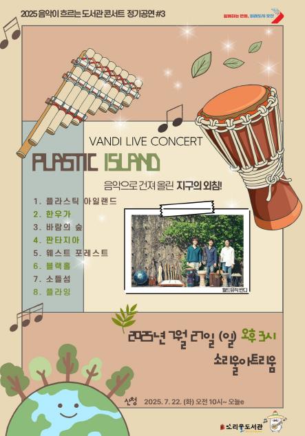 소리울도서관 관계자는 “세계 각국의 민속악기를 전시하고 있는 소리울도서관의 특성을 살려, 이번 콘서트는 그 악기들이 실제로 어떻게 연주되고 어떤 소리를 내는지 직접 체험할 수 있는 특별한 기회가 될 것”이라며, “음악이 전하는 감동을 넘어 환경에 대한 성찰과 악기 문화에 대한 호기심을 함께 불러일으키는 뜻깊은 공연이 되길 기대한다”고 전했다.