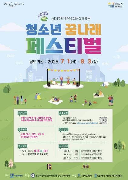 유순근 가정복지과장은 “많은 청소년들이 참여하여 재능과 역량을 발휘하고 열정 담긴 추억을 만들어 가길 기대한다”며 적극 참여를 부탁했다.