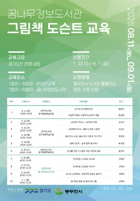 그림책 도슨트 참여를 희망하는 시민은 8월 11일부터 8월 20일까지 온라인 교육을 이수하고, 8월 26일부터 9월 1일까지 도서관에서 진행되는 현장 실습교육을 이수한 뒤 선발 절차를 거치게 된다.