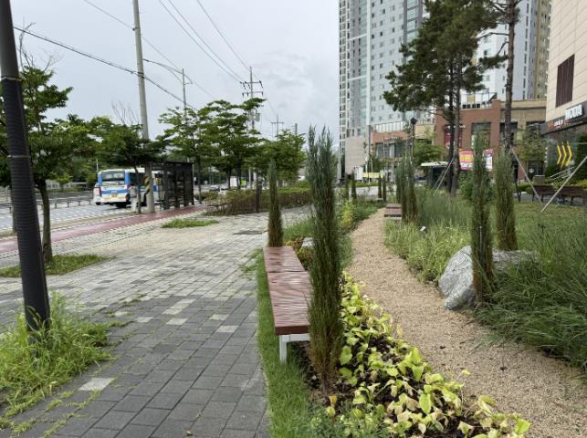 정원은 곡선 형태의 그라스 정원 5개소와 플랜터 정원 4개소로 구성되어 있으며, 청단풍 등 수목 13종, 맥문동 등 지피류 23종 등이 식재됐다. 또한 시민 편의를 위한 데크 벤치, 플랜터, 경관석, 종합안내판 등도 설치됐다.