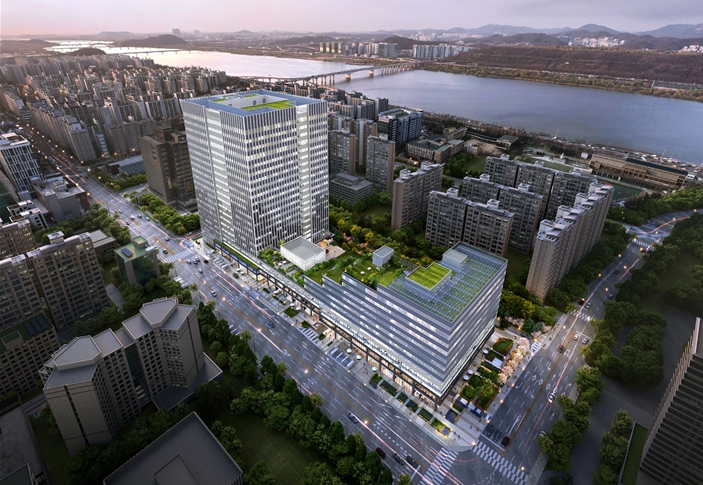 지상 21층~지하 5층 ‘케이스퀘어 그랜드강서 PFV’는 건축물 한복판을 관통하는 광장 조성으로 도로~한강을 자연스럽게 연결시키고 옥상 전반에 걸친 테라스형 정원을 조성한 점이 큰 호응을 얻었다.