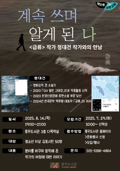 ‘계속 쓰며 알게 된 나’는 한국십진분류법(KDC) 800번대 문학 분야를 주제로 한 2025년 풍무도서관 네 번째 달밤인문학인 동시에 2025 대한민국 독서대전 연중 프로그램의 일환으로 운영된다.