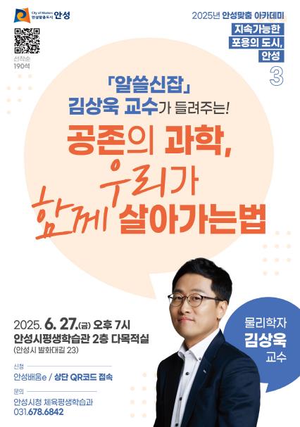 이번 강연은 새롭게 문을 연 안성시평생학습관에서 열리는 두 번째 강연으로, 오는 6월 27일 오후 7시, 시민 190명을 대상으로 평생학습관 2층 다목적실에서 진행된다.