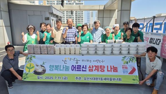 이번 나눔은 무더운 여름철 더위에 지친 취약계층의 건강을 챙기기 위해 마련됐으며, 새마을부녀회 회원들이 아침 일찍 손질한 재료로 정성스럽게 삼계탕을 조리해 의미를 더했다.