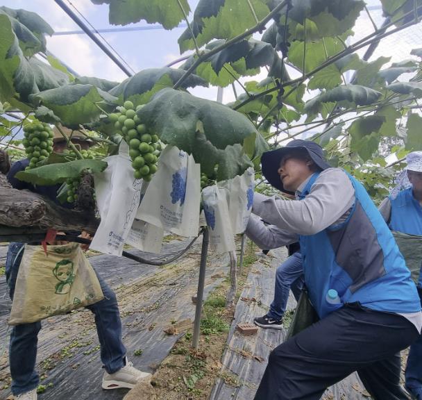 한편 내촌면행정복지센터는 지난 5월 29일부터 포도농가의 일손 부족 문제 해결을 위해 포천도시공사, 의정부도시공사, 서울대학교 글로벌사회공헌단, 포천상록수라이언스클럽, 국제희망나눔네트워크, 포천시해병전우회 등과 협력해 총 100여 명이 참여하는 일손돕기 봉사활동을 7개 포도농가에서 지속적으로 진행하고 있다.