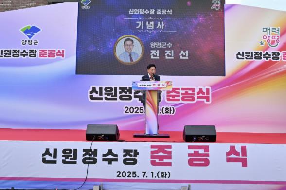 전진선 양평군수는 기념사를 통해 “신원정수장 건립을 위해 헌신해 주신 모든 관계자 여러분께 감사드리며, 공사 기간 동안 불편을 감내해 주신 주민 여러분께도 깊이 감사드린다”며, “신원정수장을 기반으로 급수구역 확대와 도시개발을 더욱 속도감 있게 추진해 나가겠다”고 말했다.