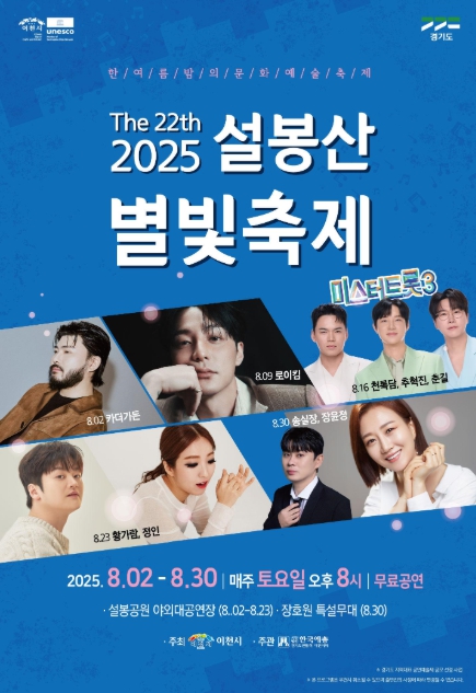 매주 토요일 저녁 8시에 열리는 설봉산 별빛축제 공연은 8월 2일 개막을 시작으로 8월 23일까지 4회에 걸쳐 설봉공원 야외대공연장에서 개최되며, 8월 30일 5회차 폐막공연은 장호원 복숭아축제장 특설무대에서 열리게 된다.