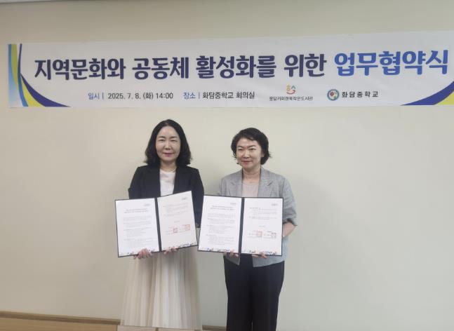 이날 화담중학교 교장실에서 진행된 협약식에는 윤미영 화성특례시 도서관정책과장, 박성웅 화담중학교장, 김수진 작은도서관팀장 등 10여 명이 참석해, 학생들의 독서역량 강화와 지역사회 내 지식문화 발전을 위한 협력체계 구축에 함께하기로 했다.