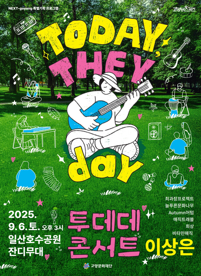 고양문화재단은 고양버스커즈 기획 공연 시리즈 ‘넥스트 고양 NEXT-goyang’의 특별 기획 프로그램으로 ‘TODAY, THEY day 투데데 콘서트’를 연다.