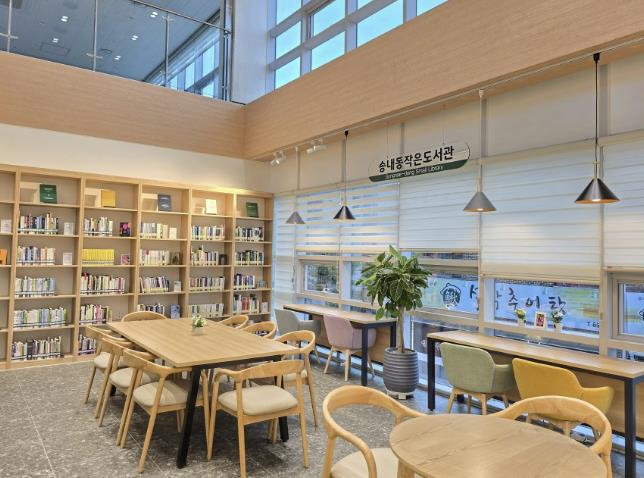 송내동 작은도서관은 단순한 도서 대여 공간을 넘어, 주민들이 교류하고 문화를 향유할 수 있는 커뮤니티 공간이다. 육아, 재테크, 취미, 문학 등 도서 1,000권이 비치된 37㎡ 규모의 북카페형 도서관으로, 편안한 독서 환경을 제공하고 있다.