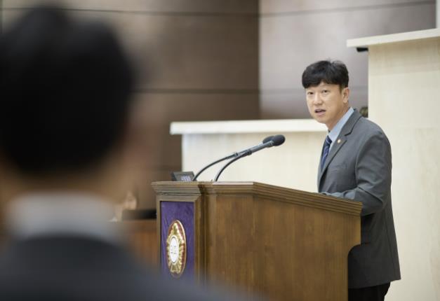 김 의원은 먼저 언동초·언동중 통학로 개선 문제를 지적하며, "20여 년 전 개교한 언동초·중은 도시계획도로조차 없이 맹지(盲地)에 건립된 상황이며, 현재 통학로로 사용 중인 도로는 지목상 '답(畓)'으로 되어 있는 사유지"라며 통학로의 안전성과 공공성 문제를 제기했다. 이어 “향후 옛 경찰대 부지에 5,440세대 규모의 공동주택이 들어설 경우 학교 인근의 차량 통행이 급격히 증가할 것으로 예상되며, 원래부터 폭이 좁아 불편을 겪던 학생들의 통학 여건은 더욱 악화될 것"이라며 "학교 앞 두 도로 간 단차를 줄이는 구조적 개선이 시급하다"고 강조했다.