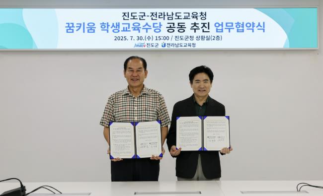 사업 재원은 진도군과 전라남도교육청이 각각 50%씩 분담하며, 이 같은 내용의 협약은 전라남도 내에서 처음 체결됐다는 점에서 이번 협약은 큰 의미가 있다.