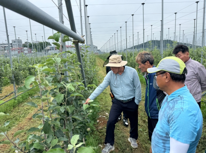 이번 현장컨설팅은 올해 초 진행된 이론교육의 연장선으로, 사과 재배 전문 강사인 최효열 강사가 맡아 진행했다. 교육은 사과 다축재배의 기초 이론부터 여름철 관리 요령까지 현장 중심으로 구성되어, 참여 농업인들의 이해도를 높이는 데 큰 도움이 됐다. 특히, 이론교육에서 배운 내용을 실제 농장에서 직접 확인하고 적용해 보는 시간을 통해 교육생들의 높은 관심과 호응을 얻었다.