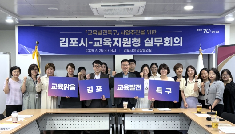 김포시는 25일 김포시청 영상회의실에서 김포교육지원청과 함께 ‘김포교육발전특구 성공적 추진을 위한 실무협의회’를 개최했다. 김포시청의 교육 관련 6개 부서 담당 팀장과 김포교육지원청 장학사가 함께 한 이 자리에서 주요 사업의 추진 현황과 협조 사항 등에 머리를 맞댔고, 김포교육의 미래를 함께 실현해 나가는 실질적인 논의가 이뤄졌다.