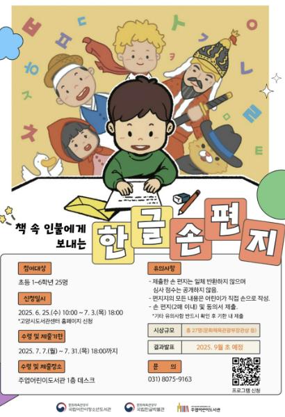 주엽어린이도서관 관계자는 “손글씨로 쓰는 편지에는 책에 대한 이해와 감동, 그리고 자신의 마음이 자연스럽게 녹아든다”며 “어린이들이 이번 공모를 통해 책과 더 가까워지고 한글의 아름다움도 체험하는 계기가 되길 바란다”고 밝혔다.