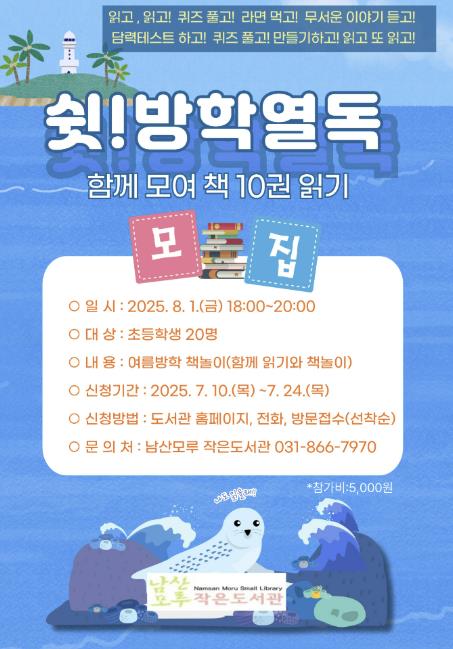 남산모루 작은도서관 관계자는 “이번 프로그램은 단순한 책 읽기를 넘어 실천으로 이어지는 특별한 경험이 될 것”이라며, “어린이들이 지구를 위한 작은 실천을 직접 체험할 수 있는 계기가 되기를 바란다”라고 말했다.