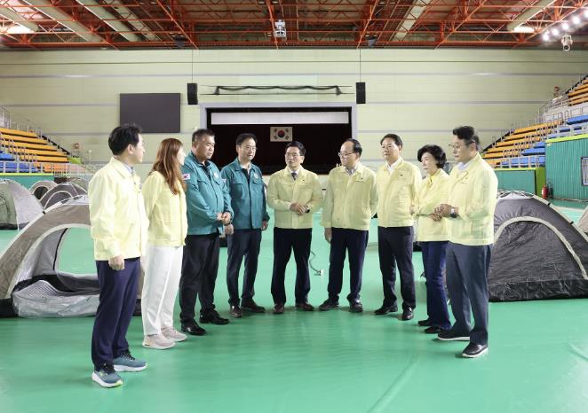 이날 이지석 의장을 비롯한 시의원들은 대피소에 머물고 있는 주민들을 만나 격려하고, 불편 사항을 청취했다.