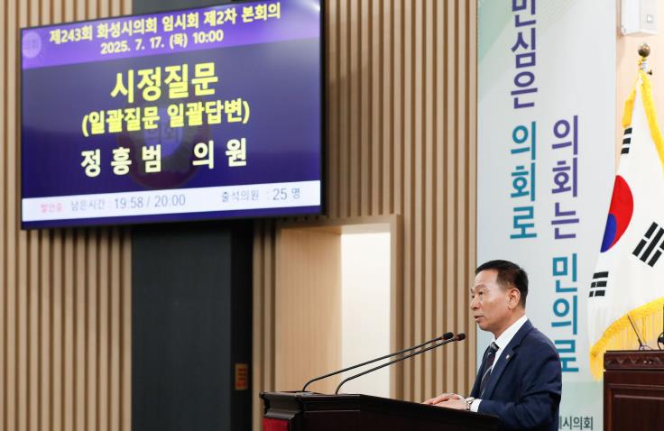 정 의원은 이어 예산 구조의 불균형을 근본 원인으로 꼽았다. 그는䶩년 화성시 본예산 기준 도로 관련 예산은 전체 일반회계의 2.61%에 불과한 810억 원으로, 복지·문화 예산(1조 4,820억 원)과 극명한 대비를 보인다”고 말했다.