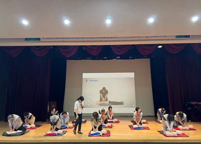 안성맞춤시니어클럽은 지난 4월 1차 맞춤형 안전교육을 실시한 데 이어, 이번 2차 교육에서는 자연재해 예방교육, 응급처치 교육, 심폐소생술(CPR) 실습 등 실질적인 위기 대응 능력 향상을 위한 실습 중심의 프로그램으로 진행했다.