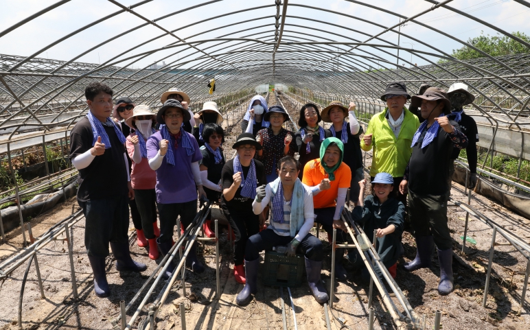 실제 현장에서는 36도에 달하는 붙볕더위에도 불구하고 비닐하우스 내 잔해와 토사 정리는 물론 손상된 농작물 전체를 이동시켜 폐기하는 작업에 참여했다.