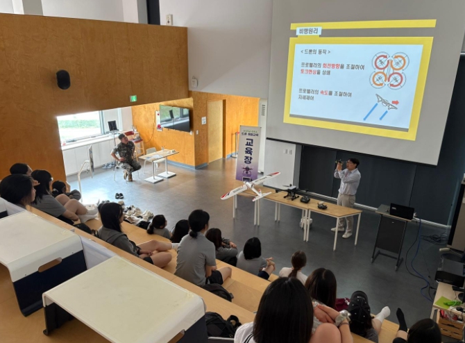 교육 내용은 드론의 역사와 원리 및 드론 운용 필수 법규 등 기초 이론을 중심으로 구성됐으며, 드론 관련 진로 소개도 함께 이루어졌다. 특히 육군정보학교 소속 교관들이 강사로 직접 참여하여 드론 기술이 국방 및 다양한 분야에서 어떻게 활용되는지에 대한 설명과 함께 군 진로를 희망하는 학생들을 위한 특강도 동시에 진행하여 학생들의 실질적인 진로 탐색 기회를 제공했다.