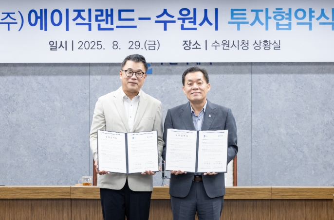 8월 29일 시청 상황실에서 열린 협약식에는 이재준 수원시장, ㈜에이직랜드 이종민 대표 등이 참석했다.