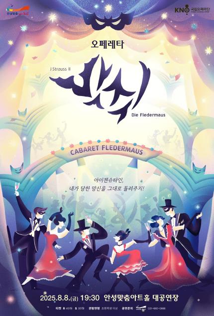 '박쥐'는 ‘왈츠의 왕’으로 불리는 작곡가 요한 슈트라우스 2세의 대표작으로, 거짓과 오해, 유쾌한 반전으로 가득한 가면무도회 속 해프닝을 그린 오페레타이다. 풍자와 위트, 생동감 넘치는 캐릭터들이 어우러져 무더운 여름날 관객에게 통쾌한 웃음을 선사할 예정이다.