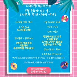 아울러 오는 7월 23일 오후 4시 30분부터 6시까지, 방학 일정으로 인해 한 주 빠르게 6세~7세 어린이를 대상으로 ‘도서관과 함께, 이야기 나라로’ 프로그램을 운영한다.
