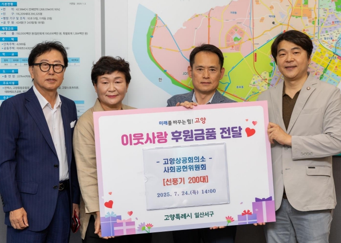 전달식에는 신영호 일산서구청장을 비롯해 고양상공회의소 사회공헌위원회 위원들도 함께 자리해 폭염 대응을 위한 지역사회의 연대와 나눔의 중요성을 함께 되새기는 뜻깊은 시간이 됐다.