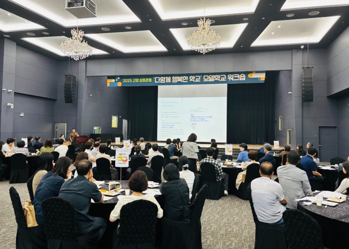 이번 워크숍은 고양 상호존중‘다함께 행복한 학교’문화를 빠르게 확산시키고자 ▲선도적인 역할의 학교 관리자, 교원, 행정실장, 학부모 등 다양한 교육주체들이 적극 참여하여 다함께 행복한 학교를 만들기 위한 교육적 열정으로 꽃을 피웠다.