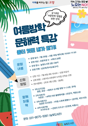 높빛도서관 관계자는 “이번 여름방학 어린이 문해력 특강을 통해 어린이의 문해력과 마음이 모두 한 뼘씩 성장할 수 있기를 바란다”라고 말했다.