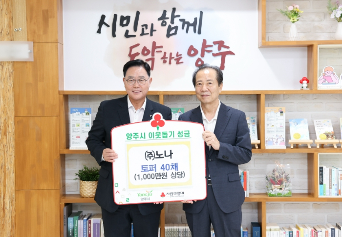 이날 양주시청에서 진행된 전달식에는 이성광 ㈜노나 대표가 참석해 따뜻한 나눔의 뜻을 전했으며, 기탁된 침구류는 경기 사회복지공동모금회를 통해 관내 저소득층과 취약계층에게 전달될 예정이다.