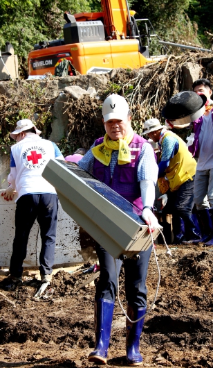 최 시장을 비롯한 안양시 공무원과 안양시자원봉사센터 직원, 대한적십자봉사회 안양시협의회 회원 등 45명은 가평군 북면 백둔리를 찾아 침수주택 내부 정리, 가재도구 세척, 토사 제거 등 복구 작업을 도왔다.