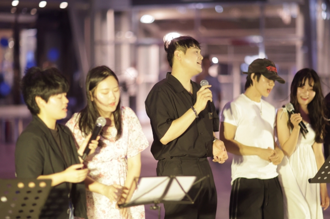 이후 신촌 스타광장에서 성태의 감미로운 발라드로 막을 연 ‘신촌 버스킹’이 펼쳐졌다. 버스킹 무대는 참가자들과 성태가 함께 연습한 곡들로 이루어졌으며 지나가는 시민들은 물론 외국인 관광객들까지 걸음을 멈추고 공연을 즐겼다.