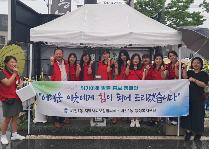임보경 비전1동장은 “비가 오는 궂은 날씨에도 캠페인에 참여하신 지역사회보장협의체 위원들에게 감사드리며, 경기 불황으로 어려움을 겪고 있는 이웃을 찾아 지역사회가 돌보는 분위기를 확산하는데 더욱 노력하겠다”라고 말했다.