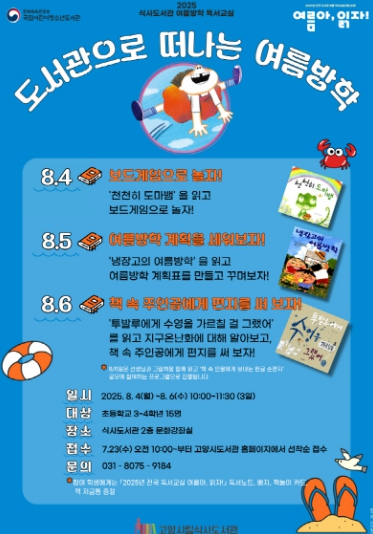 ‘도서관으로 떠나는 여름방학’ 프로그램은 총 3회차 과정으로 8월 4일~8월 6일, 오전 10시부터 11시 30분까지 식사도서관 2층 문화강좌실에서 3일 동안 진행된다.